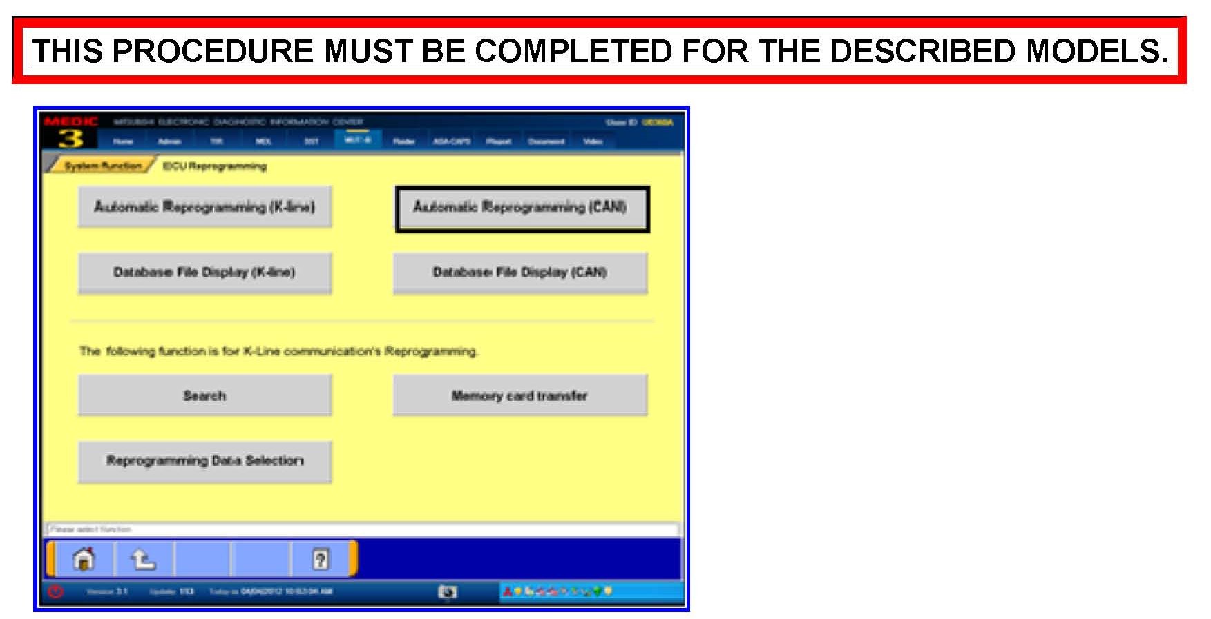 REPROGRAM 2008 LANCER EVOLUTION & EARLY 2009 LANCER AND LANCERSPORTBACK RALLIART TCM USING SOFTWARE VERSION 0001 WITH