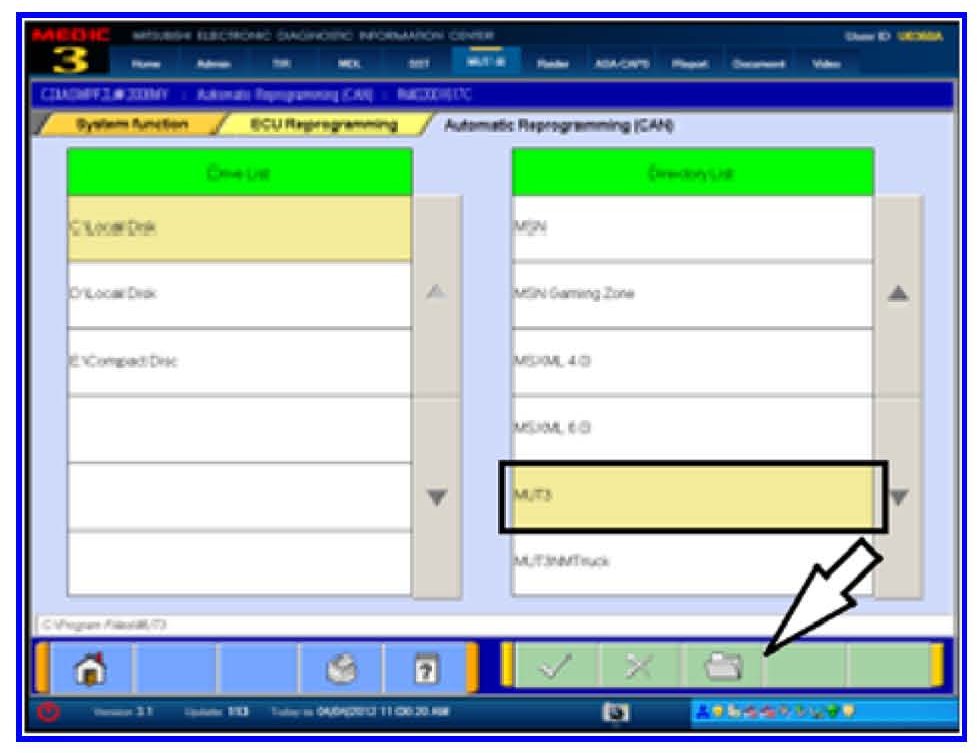 11. Select MUT3 and click the file Folder icon at the bottom of the screen.