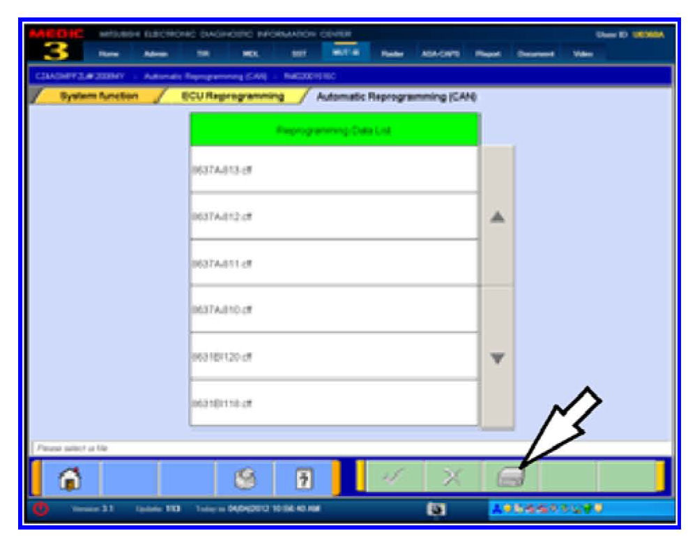17. Select file 8631A749.cff from the Reprogramming Data List and click the check mark to continue.