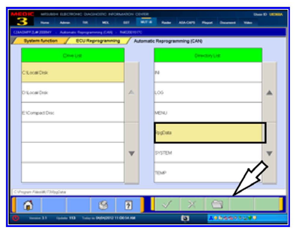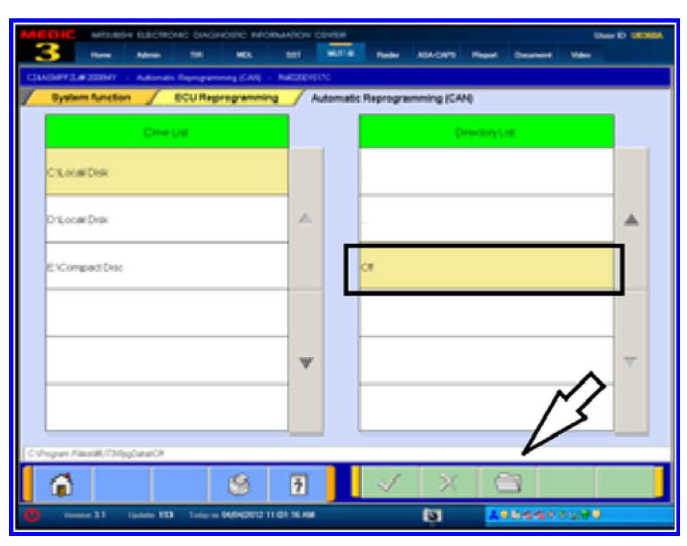 11. Select MUT3 and click the file Folder icon at the bottom of the screen.