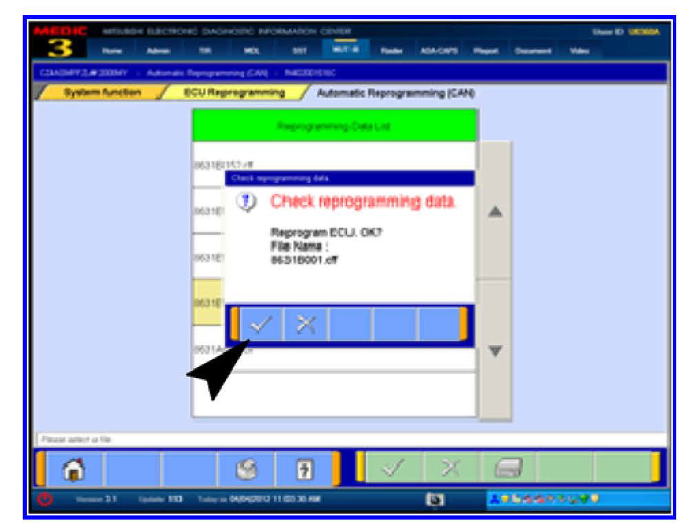 18. Click the check mark in the Check Reprogramming Data dialog box to continue.