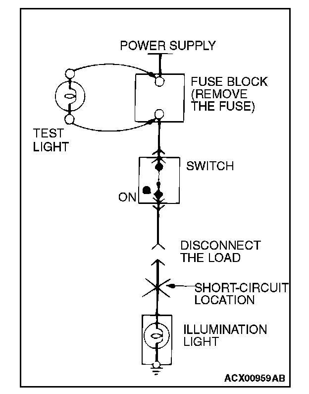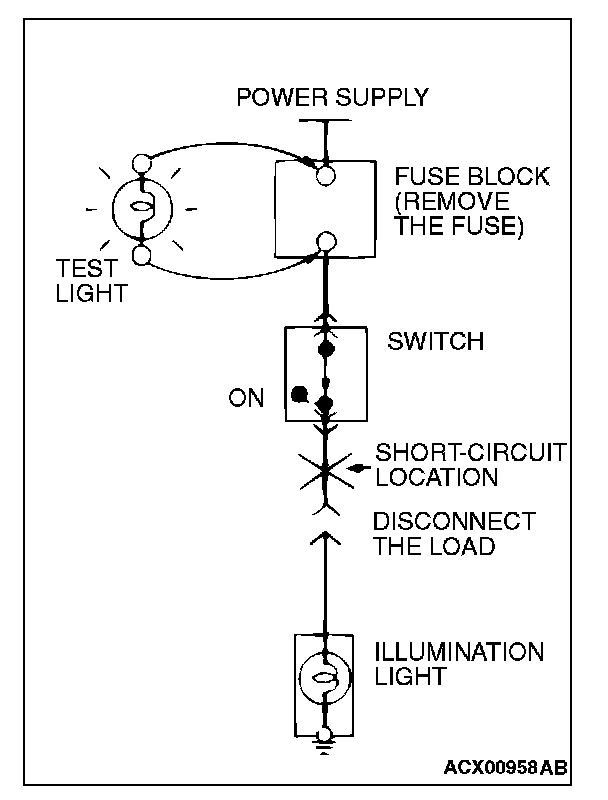 STEP 1. Remove the blown fuse and connect the test light across the fuse terminals (Circuit switch: OFF).