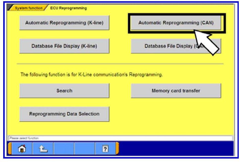DO NOT DISTURB THE HARNESS CABLES OR CONNECTIONS. INTERRUPTION DURING THE REPROGRAMMING PROCESS COULD CAUSE THE CONTROL UNIT TO LOSE DATA OR PREVENT FUTURE REPROGRAMMING. IF THE USB CABLE IS DISCONNECTED DURING THIS PROCEDURE, A WARNING MESSAGE WILL DISPLAY