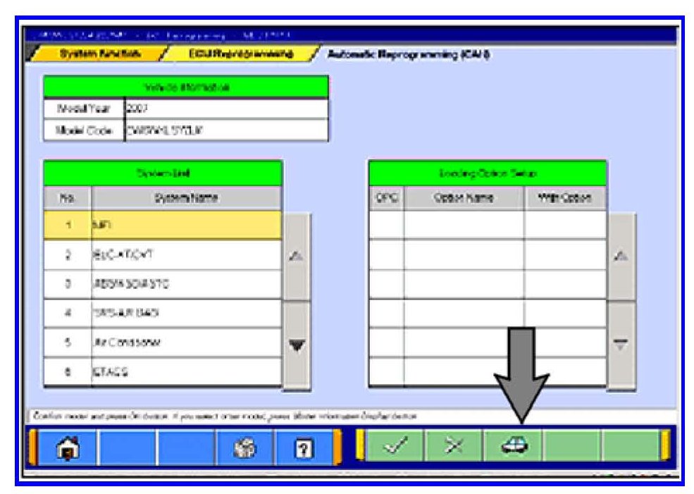 If a "Complete Reprogramming" message is displayed, the ECM is already reprogrammed for this concern. If this message displays, do not continue with this reprogramming procedure. Click the check mark to clear the window, then click on the Home icon at the lower left corner of the screen to return to the System Select main page.