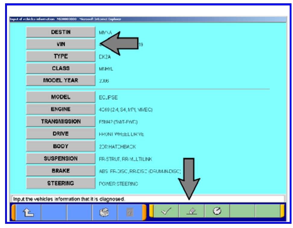 g. If the VIN listed does not match the vehicle you are working on click on the eraser icon at the bottom of the page.