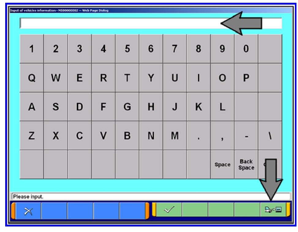 h. Click on the icon in the lower RH corner of the screen to have the MUT-III automatically read the VIN. If a message appears saying that the VIN cannot be input automatically manually type the 17 digit VIN into the VIN field.
