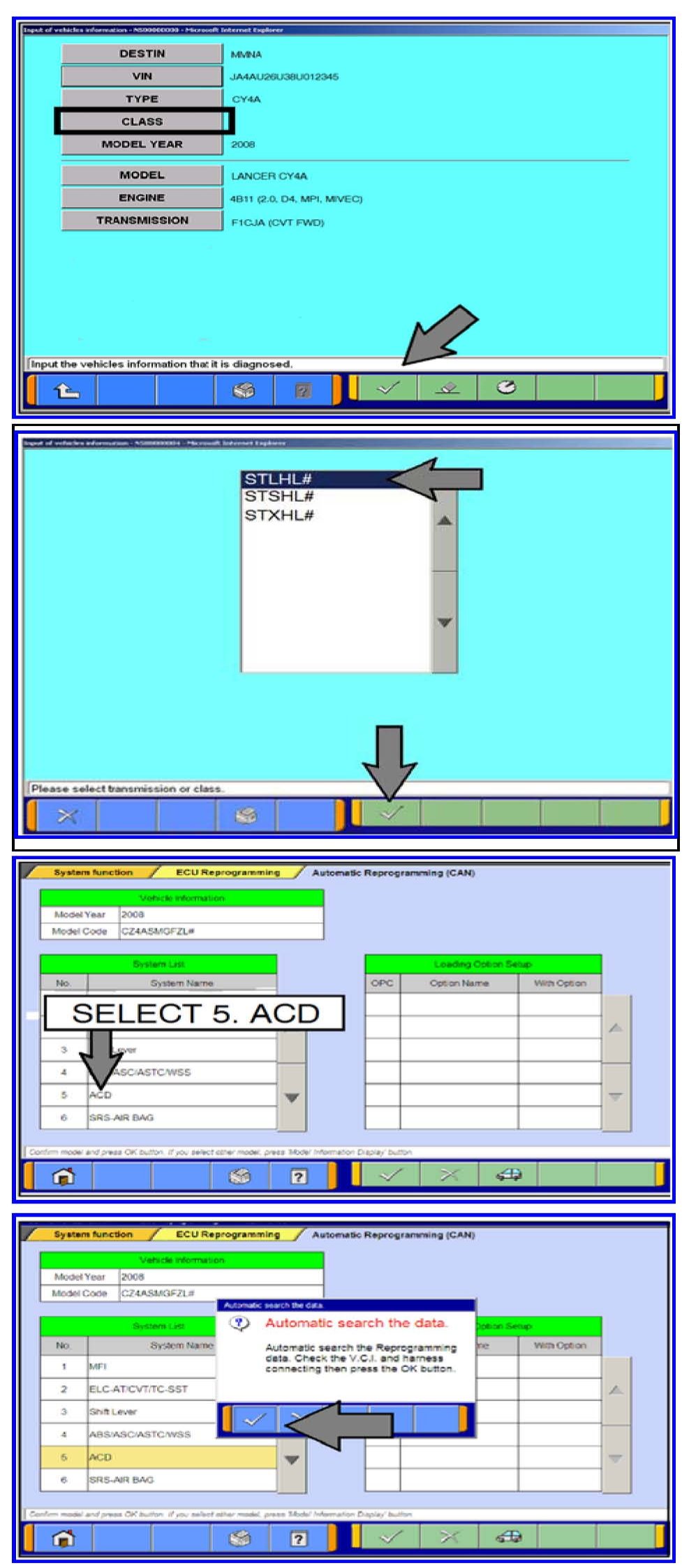Click on either the TRANSMISSION or CLASS button and make the appropriate selection from the menu Then click the check mark at the bottom of the page. Vehicle class can be found on the Vehicle Information Code Plate riveted to the base of the RH B-pillar (see photo below). The class is part of the model code.