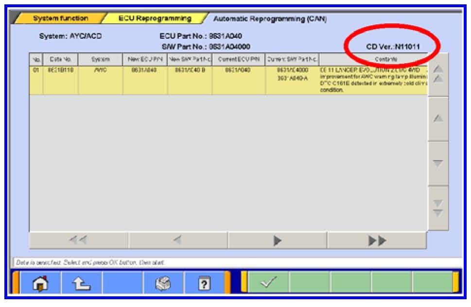 m. This message will display when the reprogramming is successfully completed. Record the S/W (Software) Part No. and compare it to the "New Software P/N' in the table below.