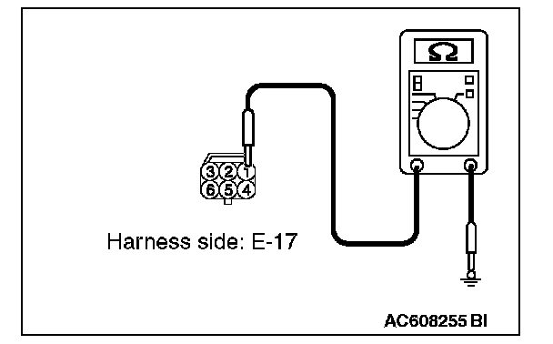 STEP 5. Check the wiring harness between front door lock actuator (LH) connector E-17 (terminal 1) and ground.