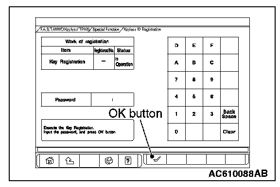1. On the "Keyless ID Reg." screen, enter the password and press the OK button.
