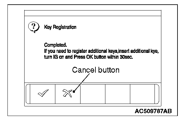 NOTE: When the key cannot be registered using scan tool MB991958, refer to Inspection Procedure 2 "The ignition key cannot be registered using scan tool. Inspection Procedure 2