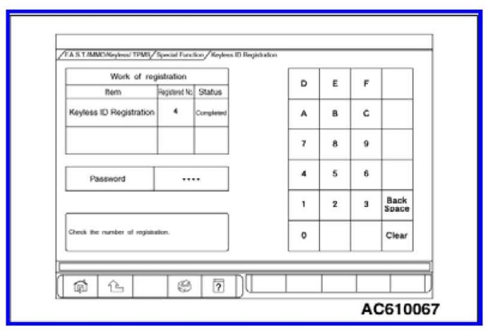 1. On the "Keyless ID Reg." screen, enter the password and press the OK button.