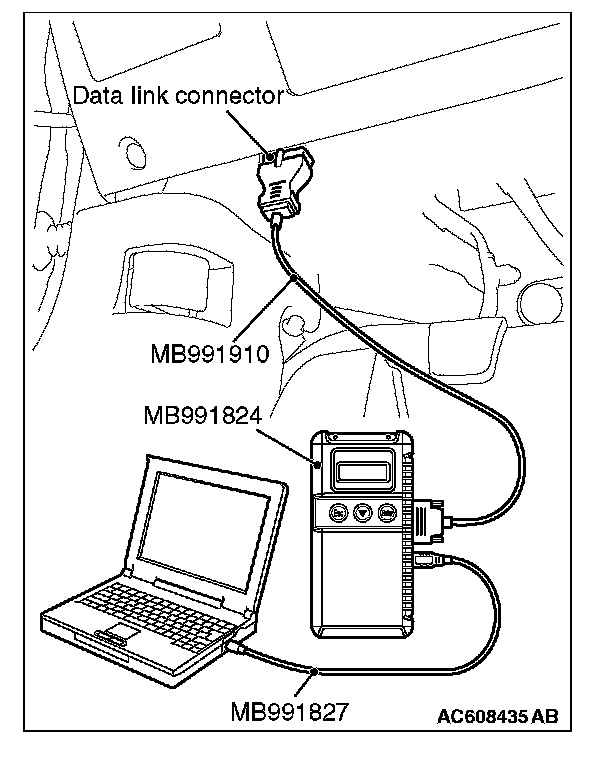 1. Connect scan tool MB991958. Refer to "How to connect the Scan Tool (M.U.T.-III)". Scan Tool Connecting