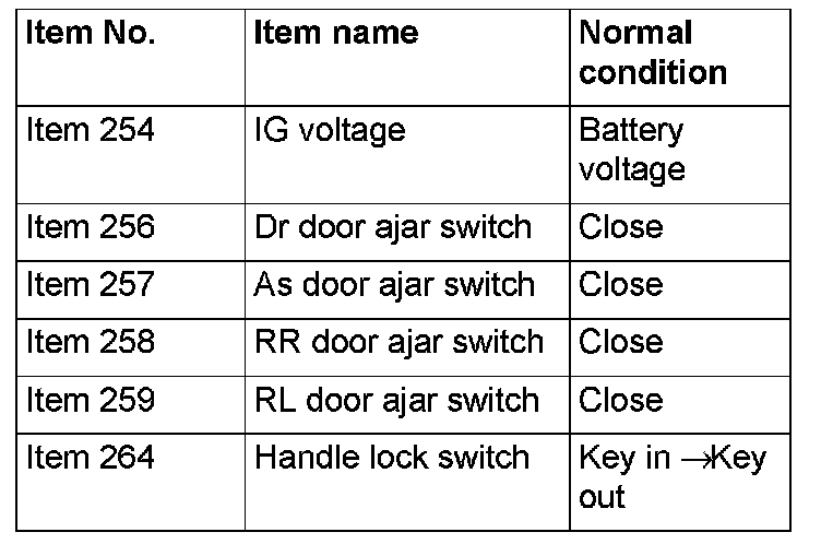 With the ignition switch in the LOCK (OFF) position, check if the following function operates normally: