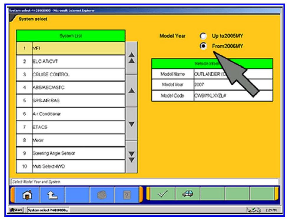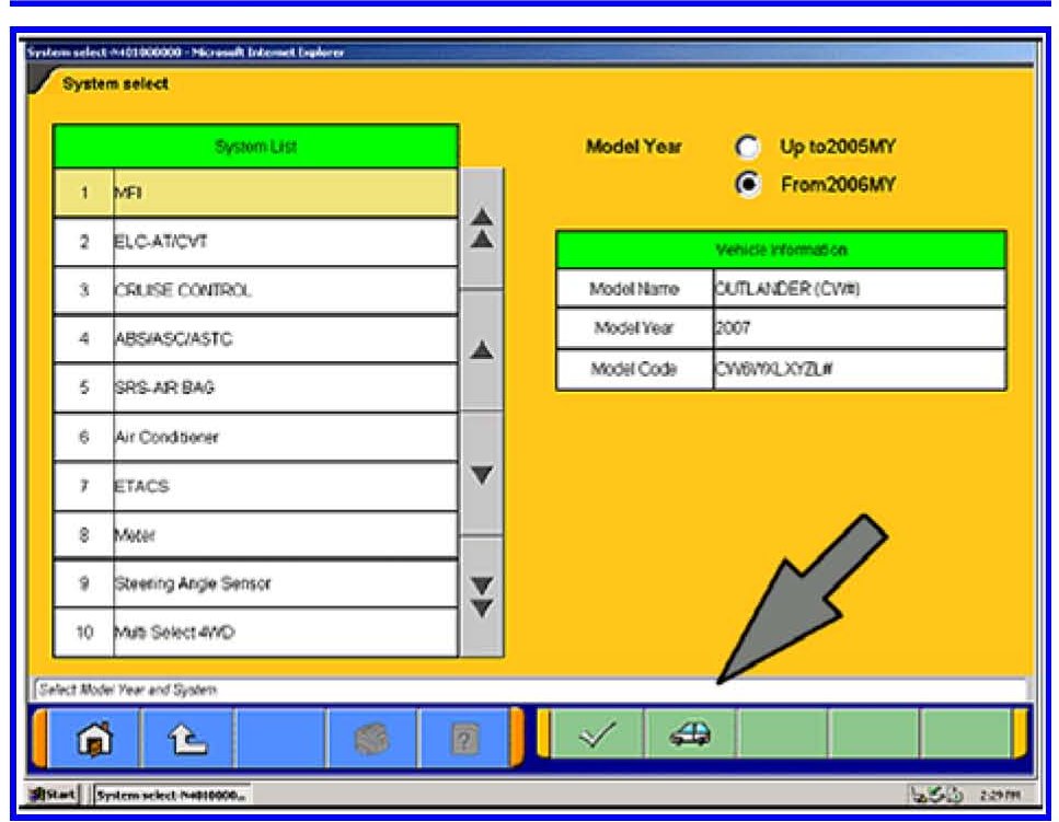 1. Click on the up arrow at the bottom of the screen to return to the F.A.S.T/IMMO/Keyless/TPMS screen.