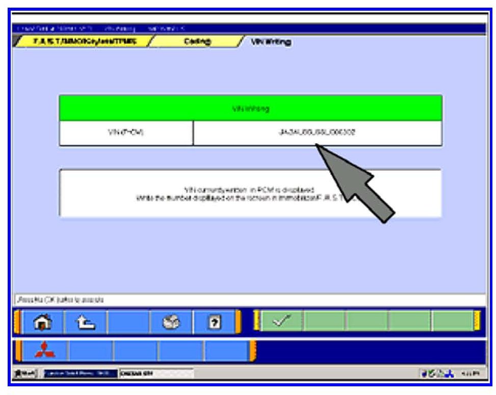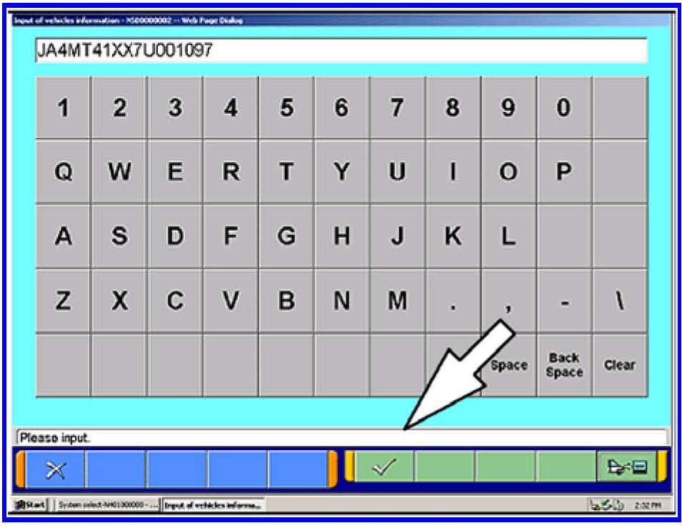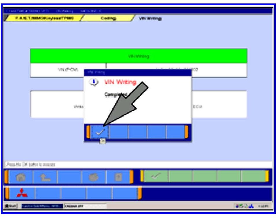 6. When VIN writing is complete, this screen will appear. Click the check mark to confirm VIN writing.