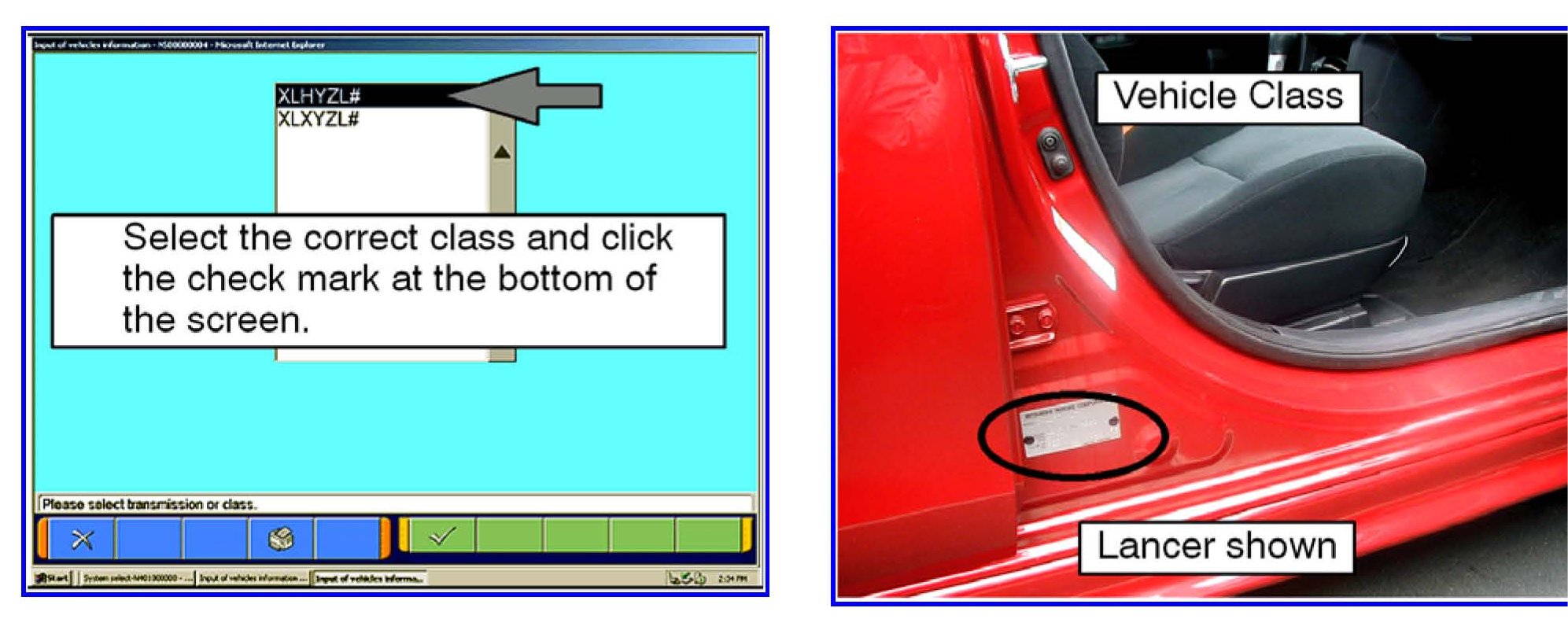 8. If it was not completed automatically, input the vehicle class. Click on the CLASS button, select the appropriate class from the menu and then click the check mark at the bottom of the page.