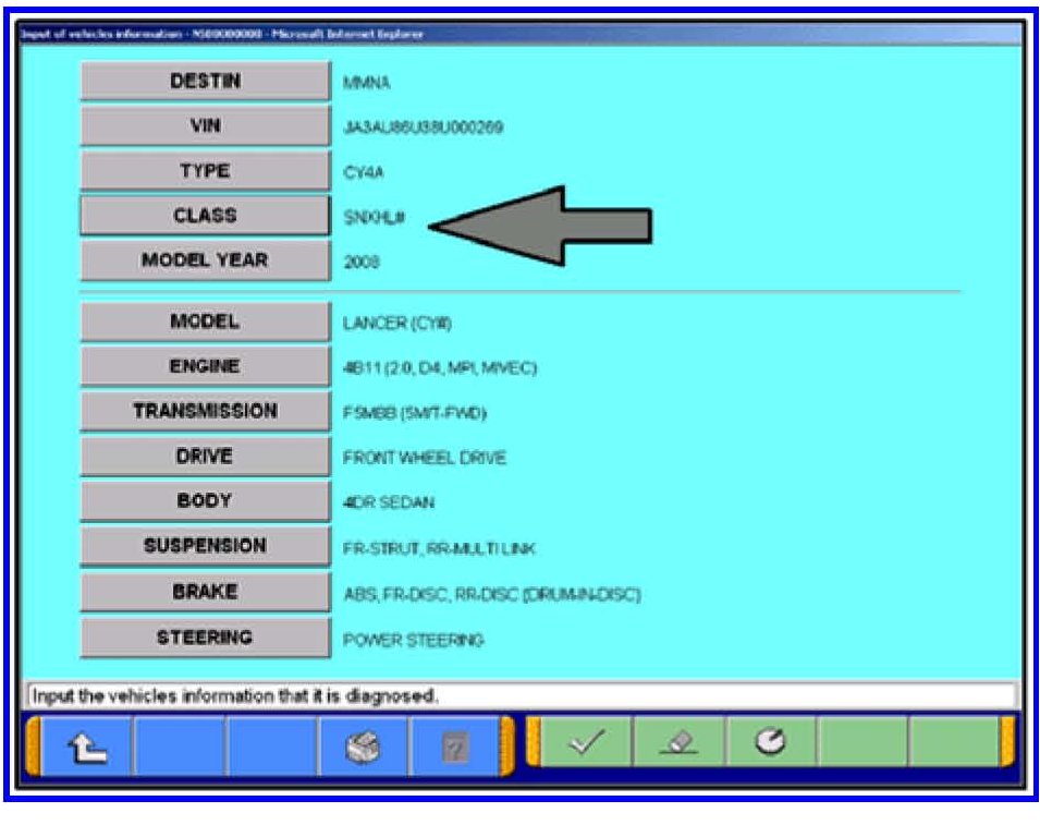 6. Click the car icon at the lower RH corner of the screen to have the MUT III automatically input the VIN. If a message appears stating that the VIN cannot be completed automatically, manually type the 17 digit VIN into the VIN field or click the individual characters on the on-screen keyboard.