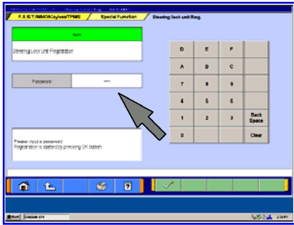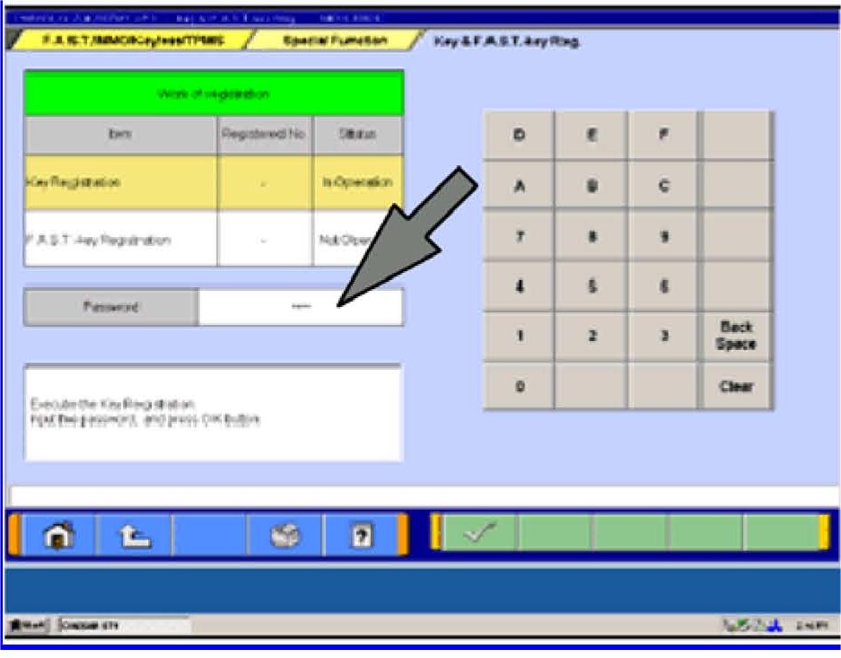 4. Either type or use the onscreen keyboard to input the Key Register Password. Then click on the check mark at the bottom of the screen.