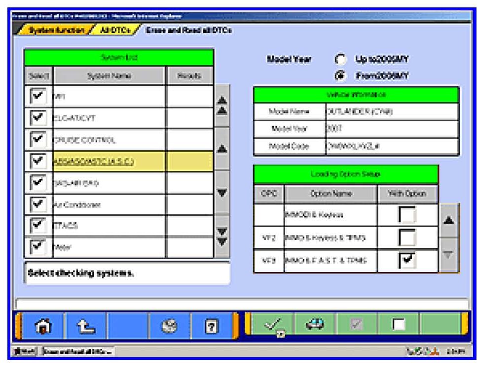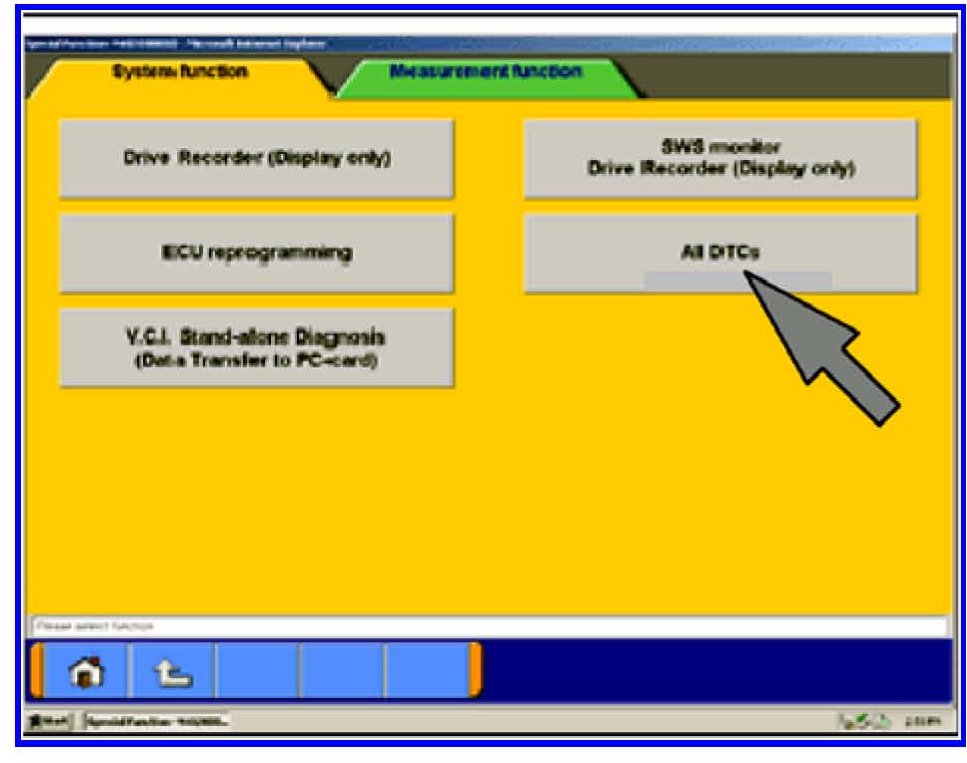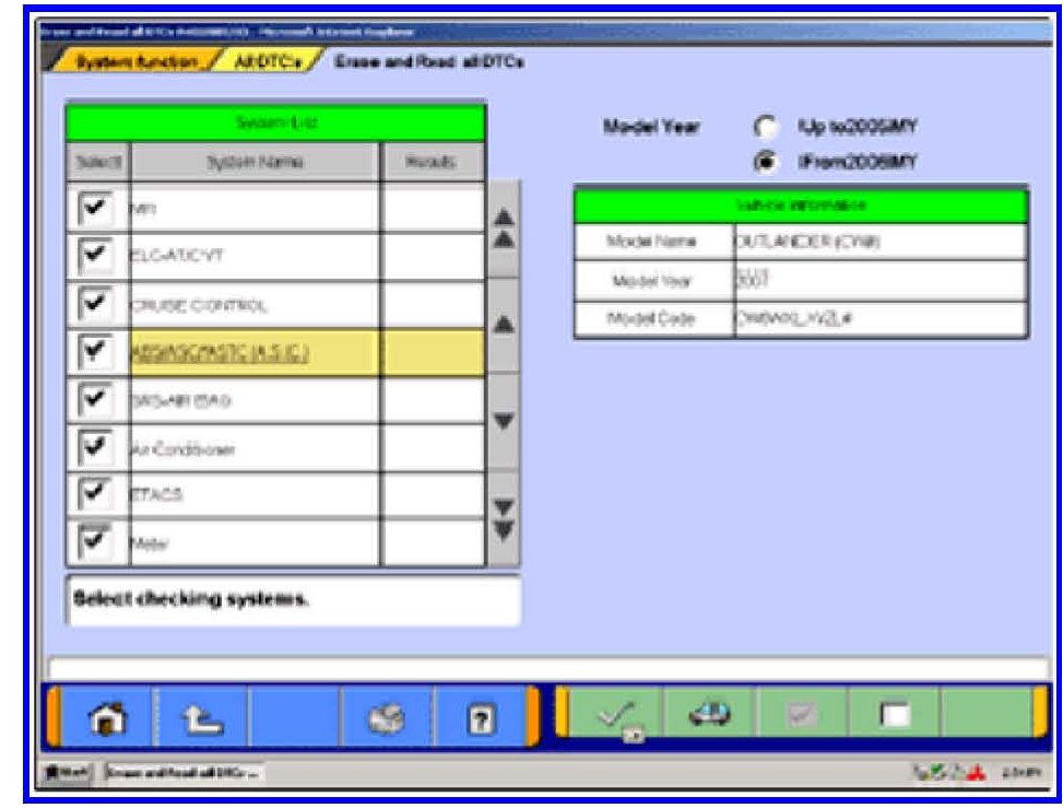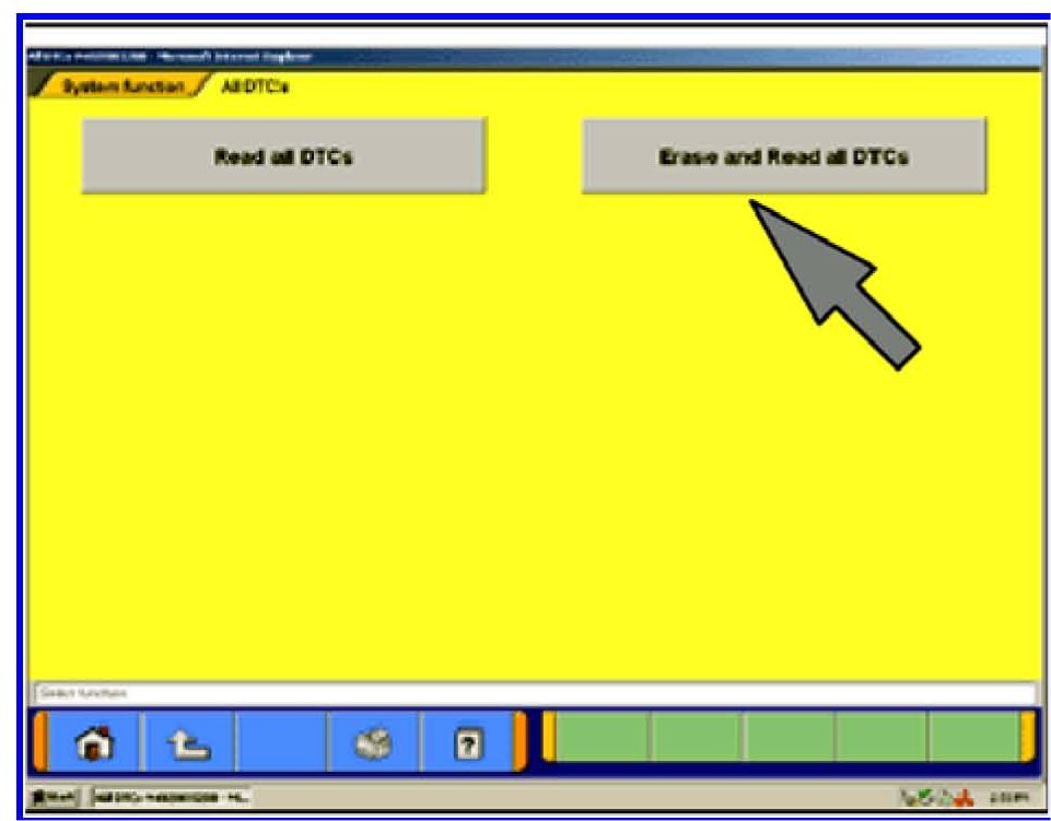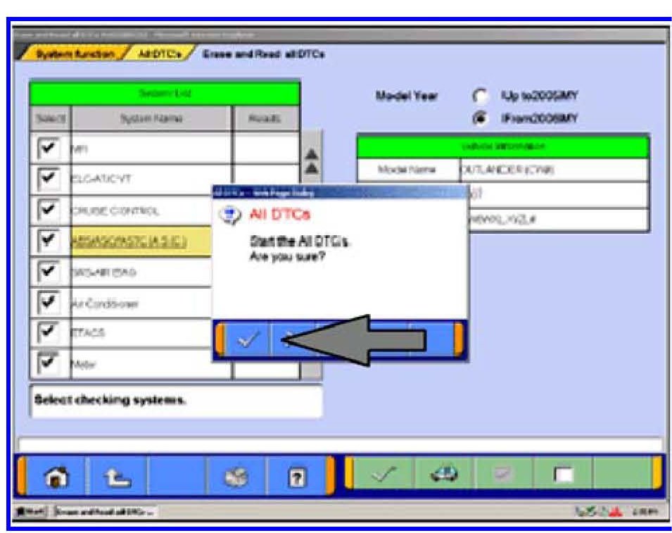 7. When the dialog box "Start The All DTC's Are You Sure" appears, click on the check mark.