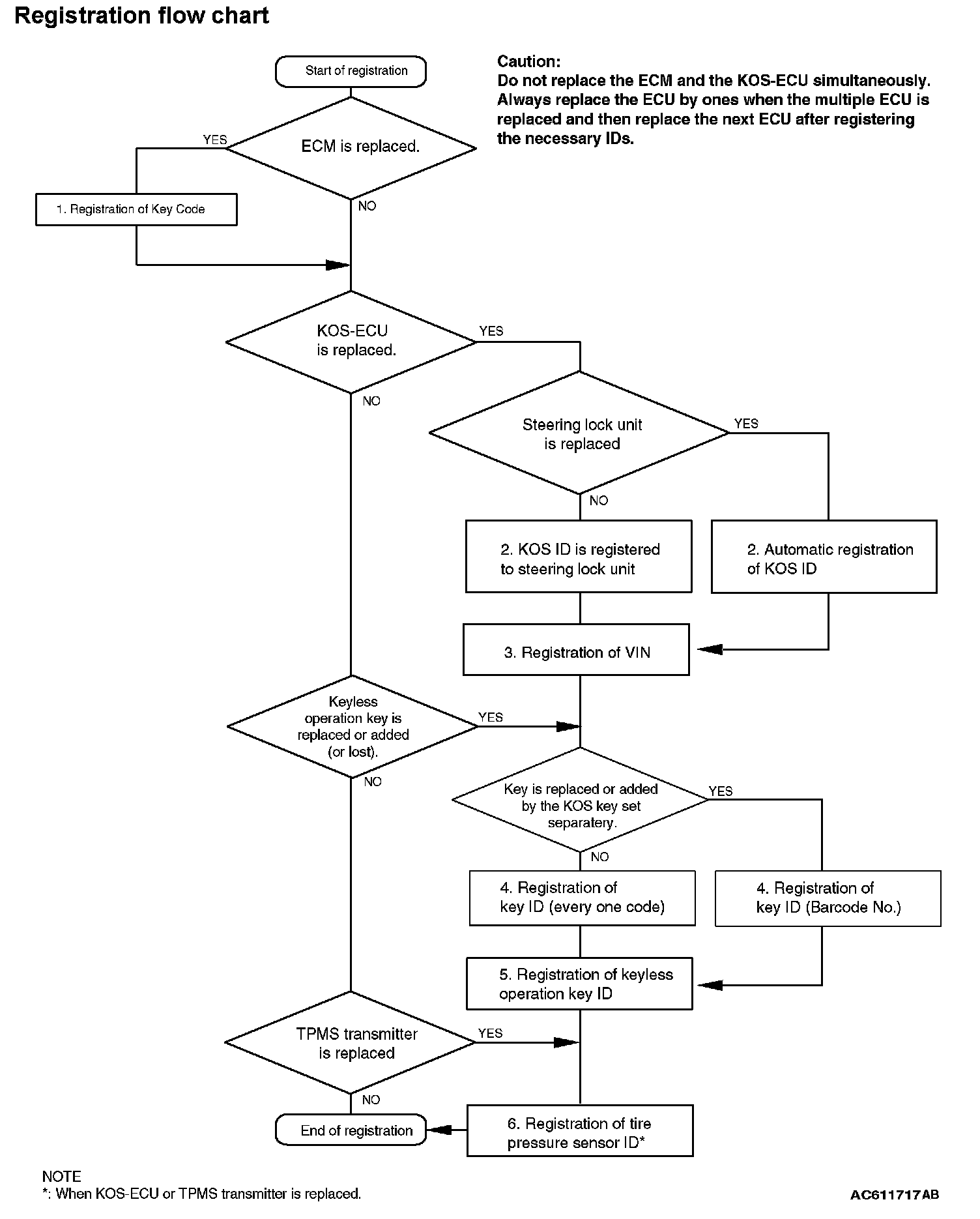 NOTE: The KOS-ECU memory can memories the maximum 4 different keyless operation keys (keyless operation key ID codes and key IDs).