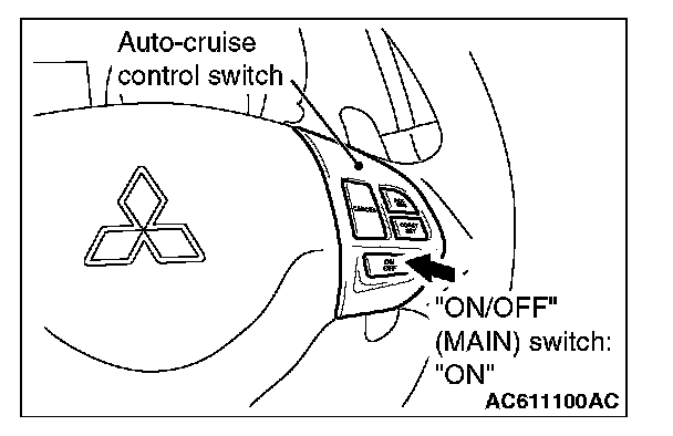 2. Press the "ON/OFF" (MAIN) switch again, and check that the "CRUISE" indicator light within the combination meter goes out.