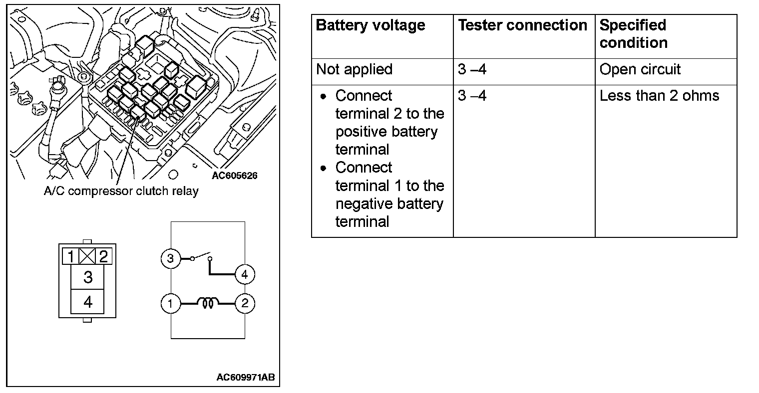 A/C Compressor Clutch Relay Continuity Check: