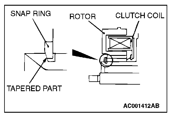 Using snap ring pliers, fit the snap ring so that the snap ring's tapered part is on the outside.