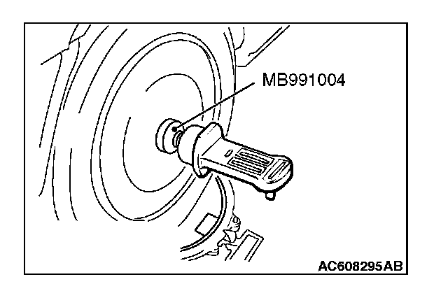 NOTE: For vehicles with aluminum type wheels, attach the camber/caster/kingpin gauge to the driveshaft by using the special tool MB991004. Tighten the special tool MB991004 to the same torque 160±16 Nm (118±12 ft-lb) as the driveshaft nut.