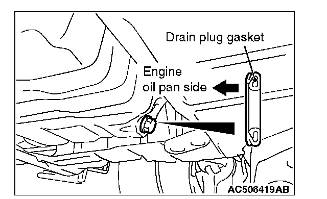 4. Install a new drain plug gasket so that it faces in the direction shown in the illustration, and then tighten the drain plug to the specified torque.
