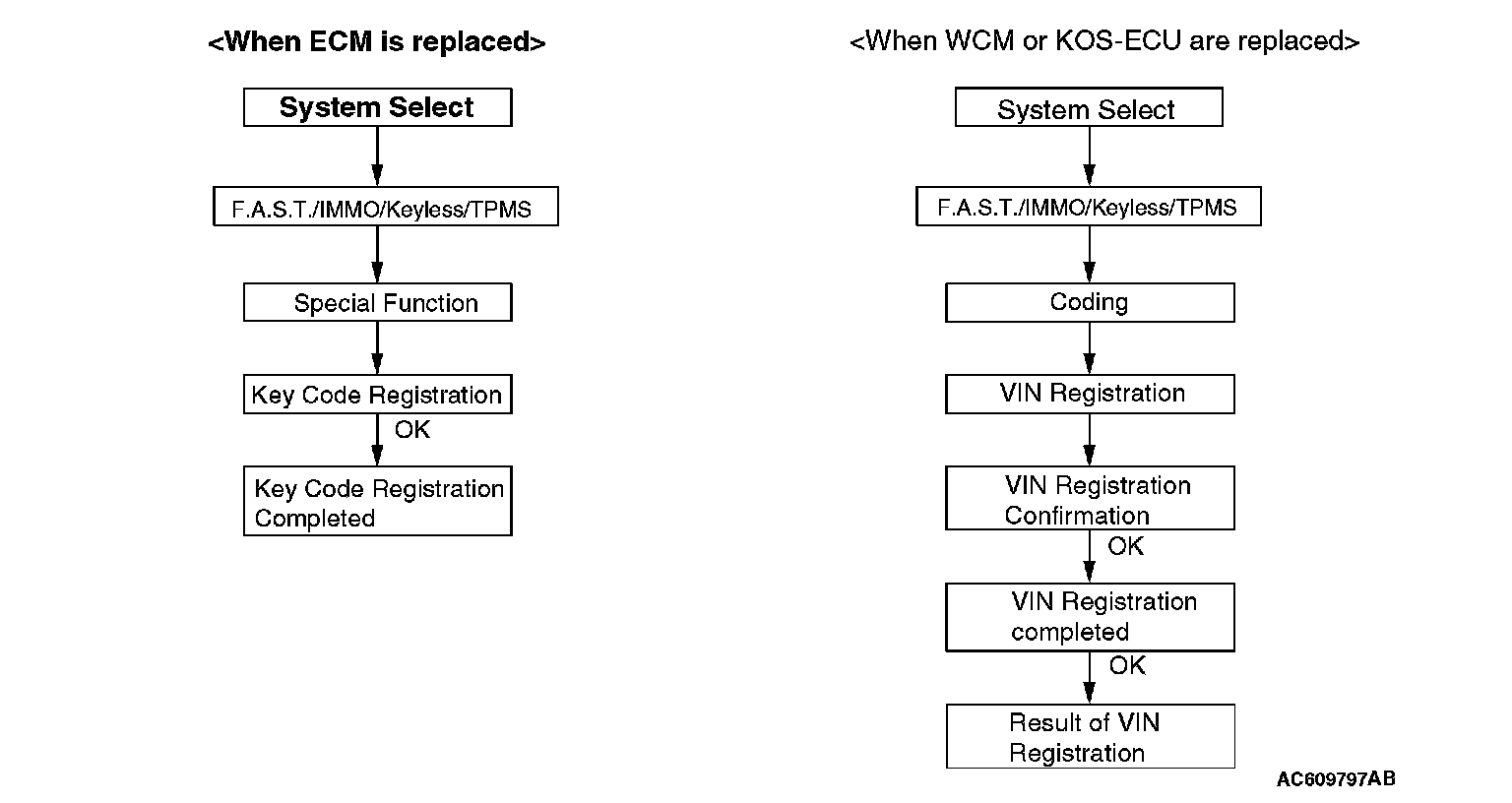 Follow the procedure below to register the VIN of the Wireless Control Module (WCM) and the Keyless Operation System (KOS).
