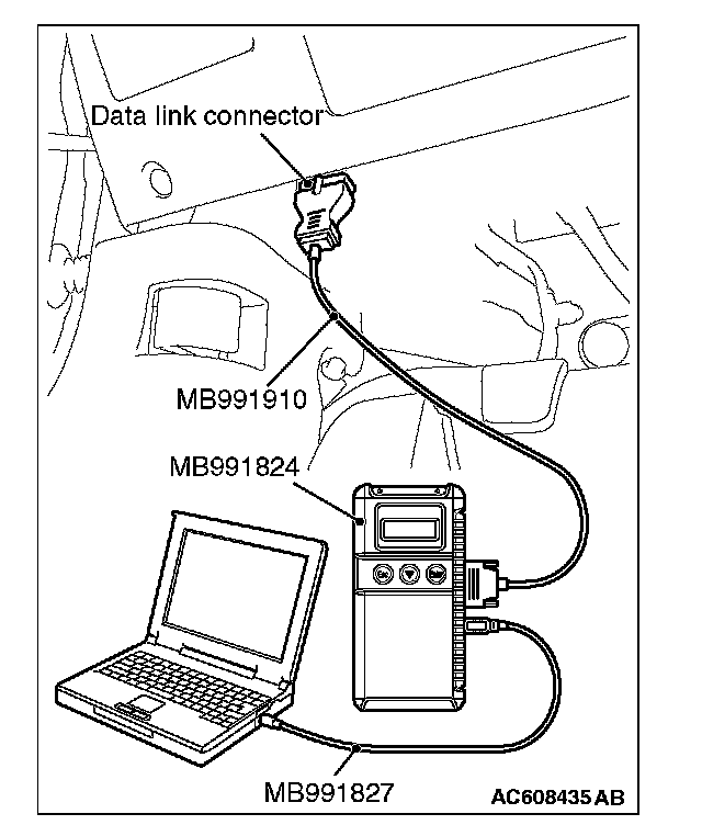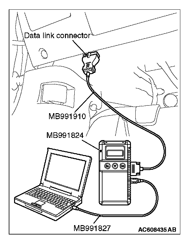 5. Connect special tool MB991910 to the data link connector of the vehicle.