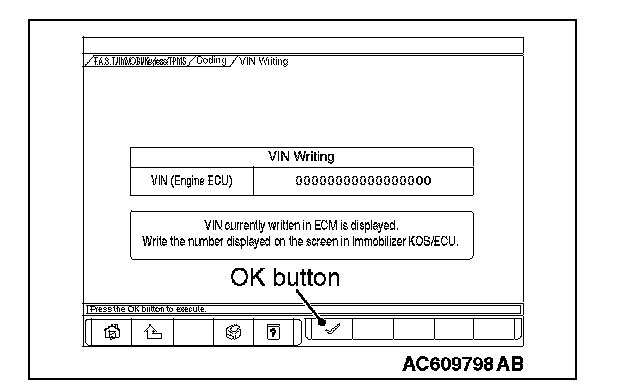 11. Push the OK button after the VIN written in the engine control module is displayed.