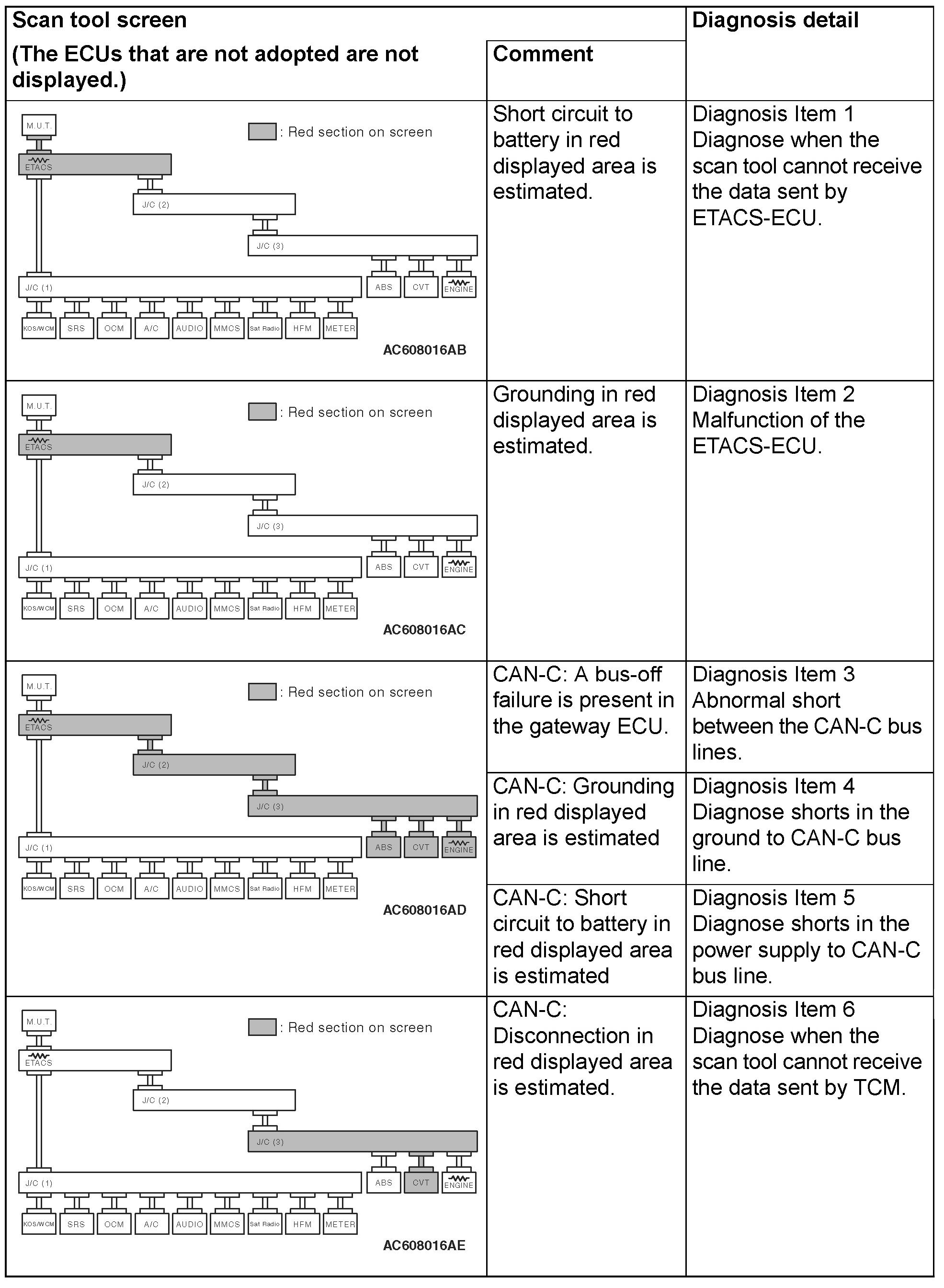 This diagnosis applies only to the CAN bus lines. If a different system is defective, proceed to the applicable diagnosis section for each system. Observe the diagnosis procedure below only when the CAN bus line is defective.