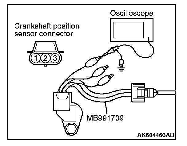 3. Disconnect the crankshaft position sensor connector, and connect the test harness special tool (MB991709) between the separated connector.