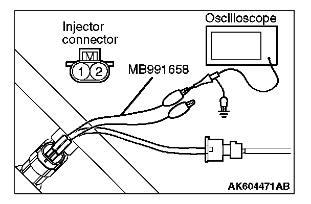 1. Disconnect the injector connector, and connect the test harness special tool (MB991658) between the separated connector. (All terminals should be connected.)