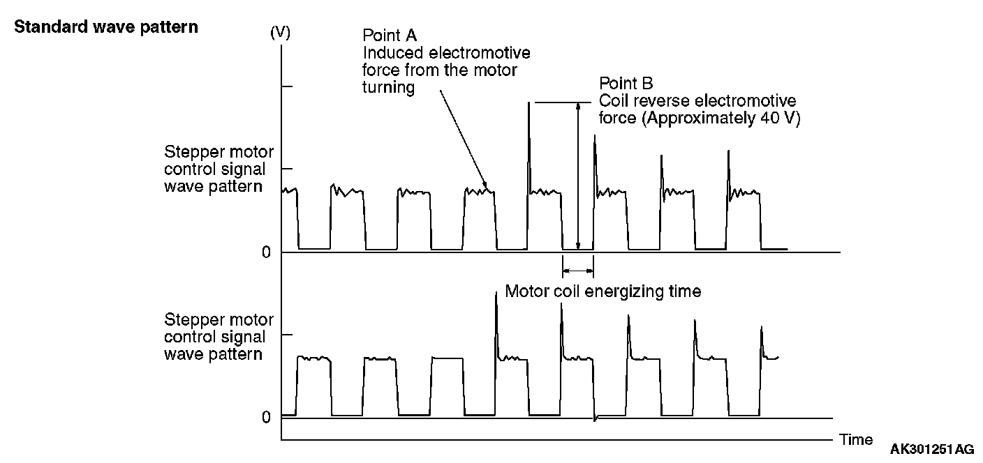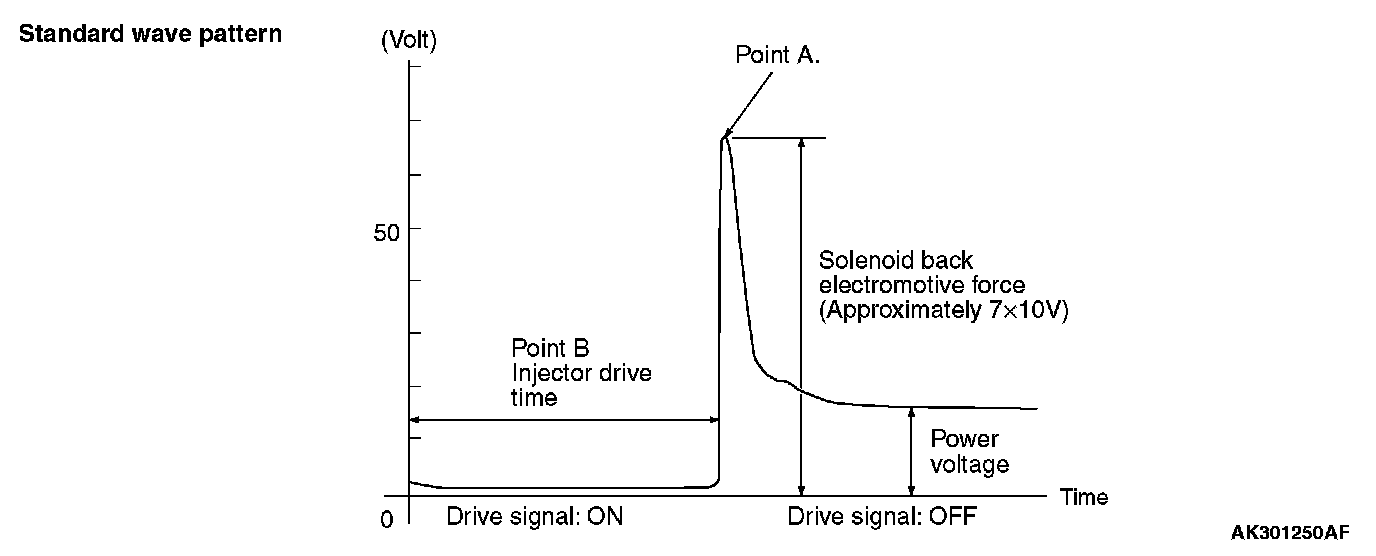 Point A: Presence or absence of induced electromotive force from the motor turning. (Refer to abnormal wave pattern.)