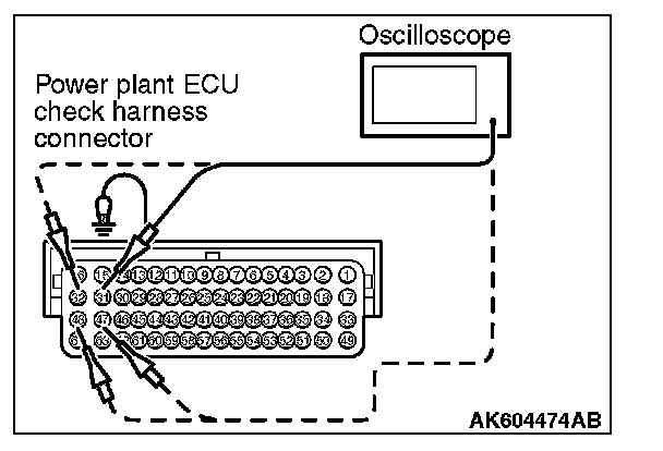2. Connect the oscilloscope probe to check harness terminal No. 31, No. 32, No. 47 and No. 48.
