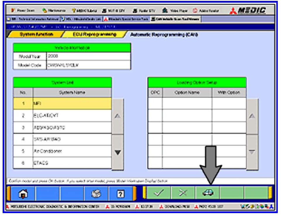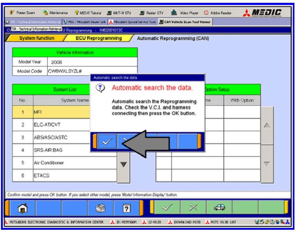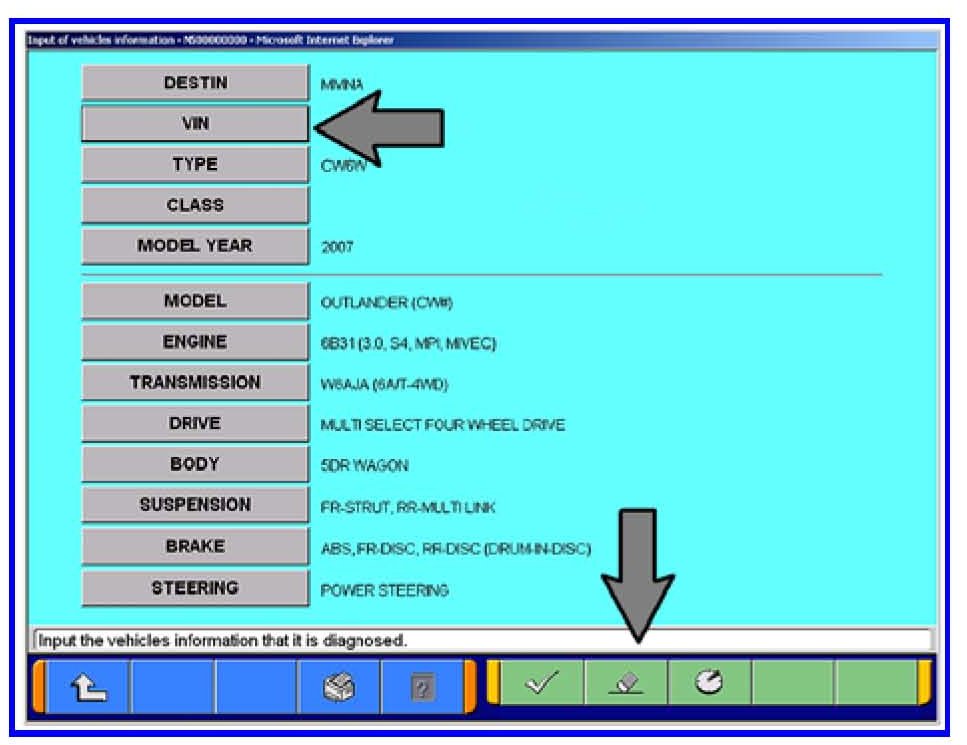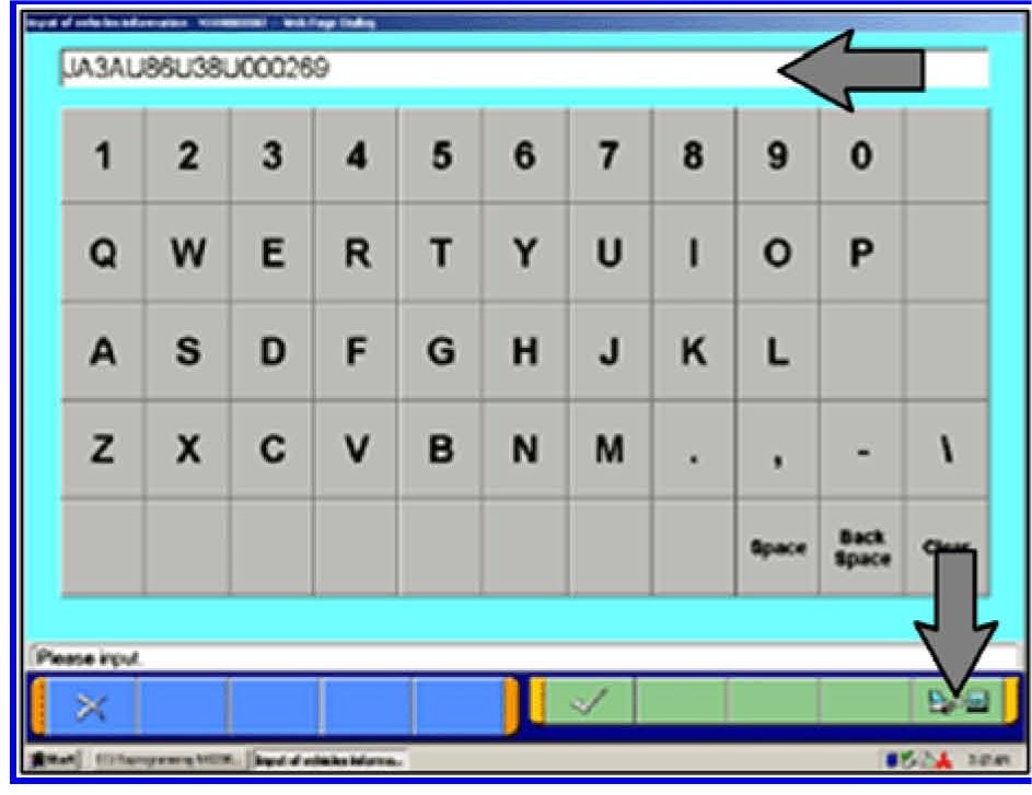 g. Click on the icon in the lower RH corner of the screen to have the MUT-III automatically read the VIN. If a message appears saying that the VIN cannot be input automatically, manually type the 17 digit VIN into the VIN field.
