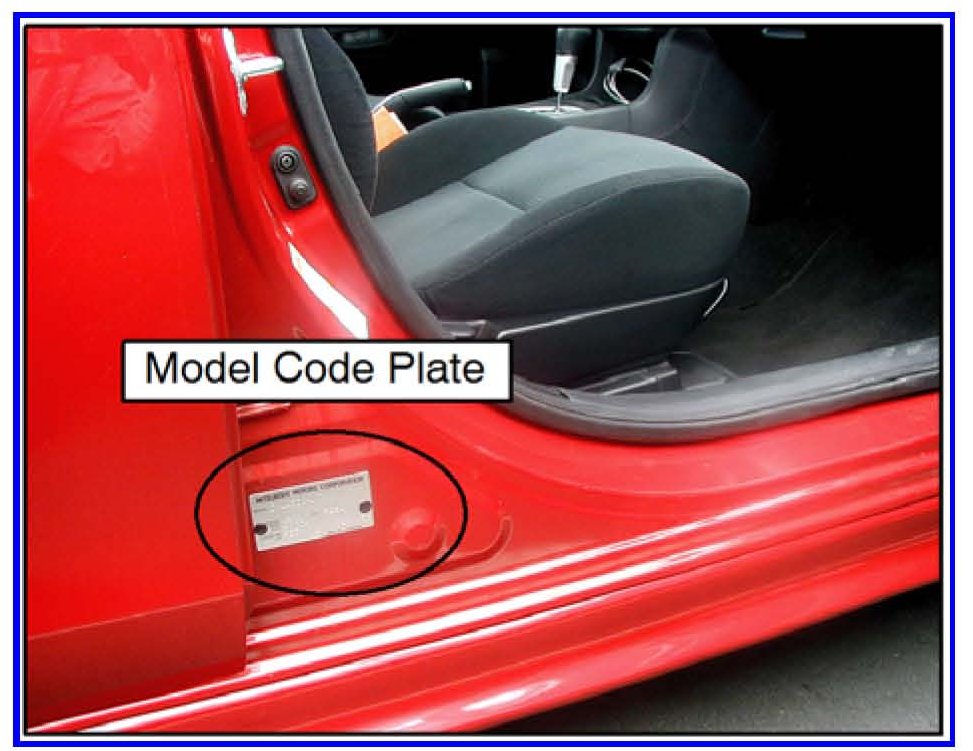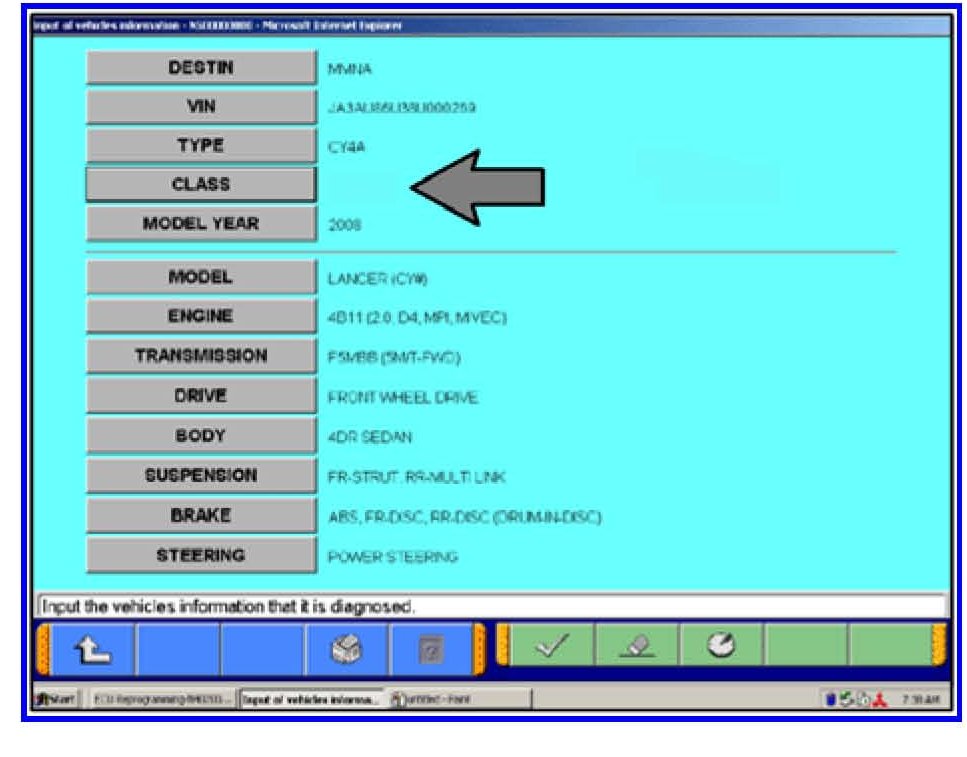 h. If it was not completed automatically, input the vehicle class. Click on the CLASS button, select the appropriate class from the menu and then click the check mark at the bottom of the page. Vehicle class can be found on the Vehicle Information Code Plate riveted to the base of the RH b-pillar (see photo above). The class is part of the model code.