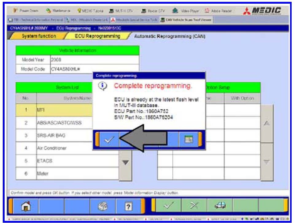 Click the check mark and you will be returned to the "ECU Reprogramming" page.