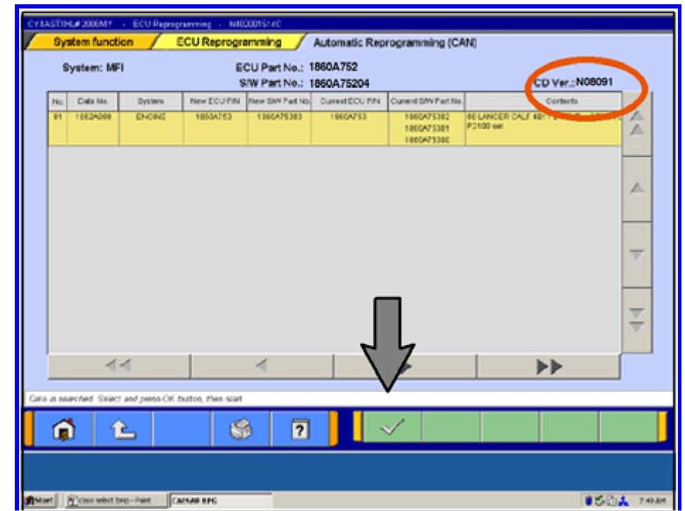 m. This message will display when the ECM reprogramming is successfully completed. Record the S/W (Software) Part No. and compare it to the "New S/W Part No." from the ECM Reprogramming Chart shown in this TSB. Turn the ignition to the OFF position for a minimum of 8 seconds, then turn it back on.