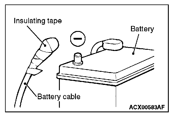 Disconnect the negative (-) battery cable from the battery and tape the terminal to prevent accidental connection and deployment.
