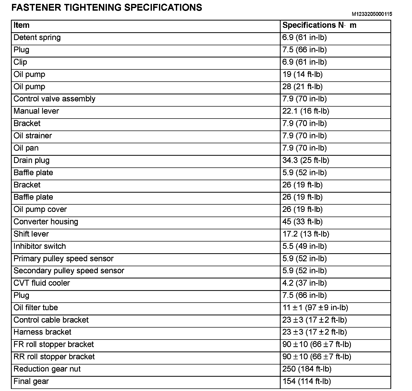 Fastener Tightening Specifications