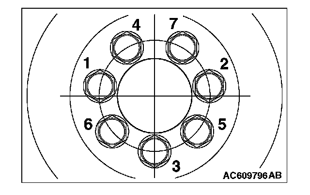 Tighten flywheel bolts to temporary torque in the order shown in the illustration.