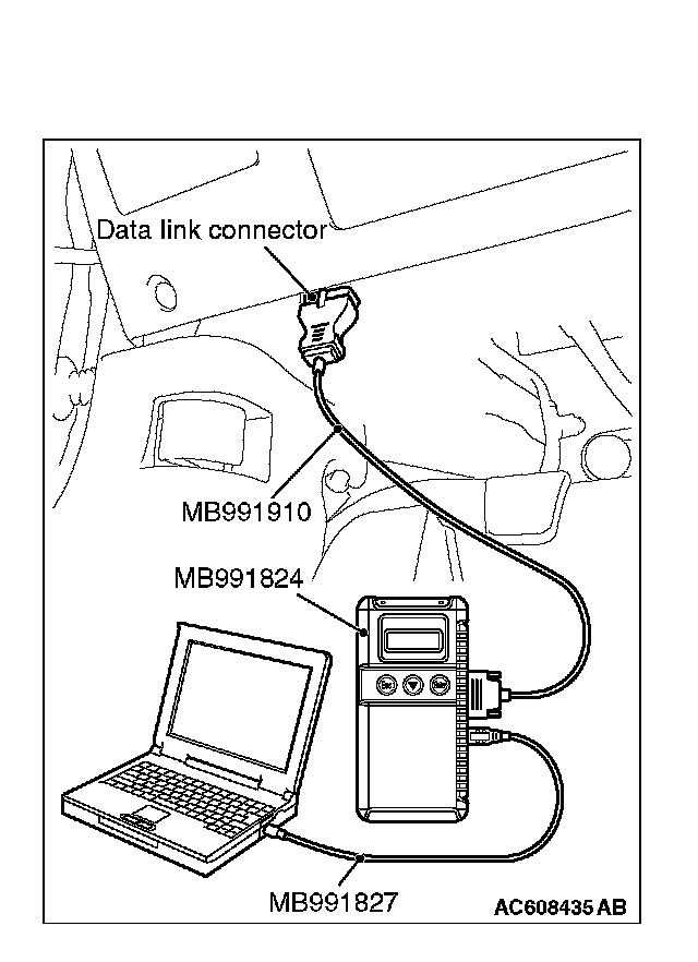 1. Connect scan tool MB991958 to the data link connector.