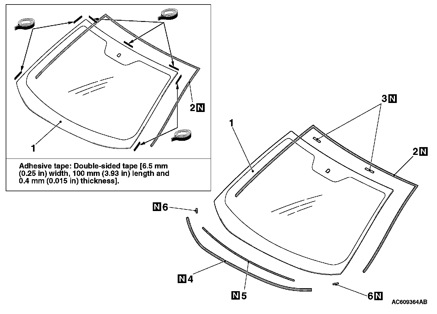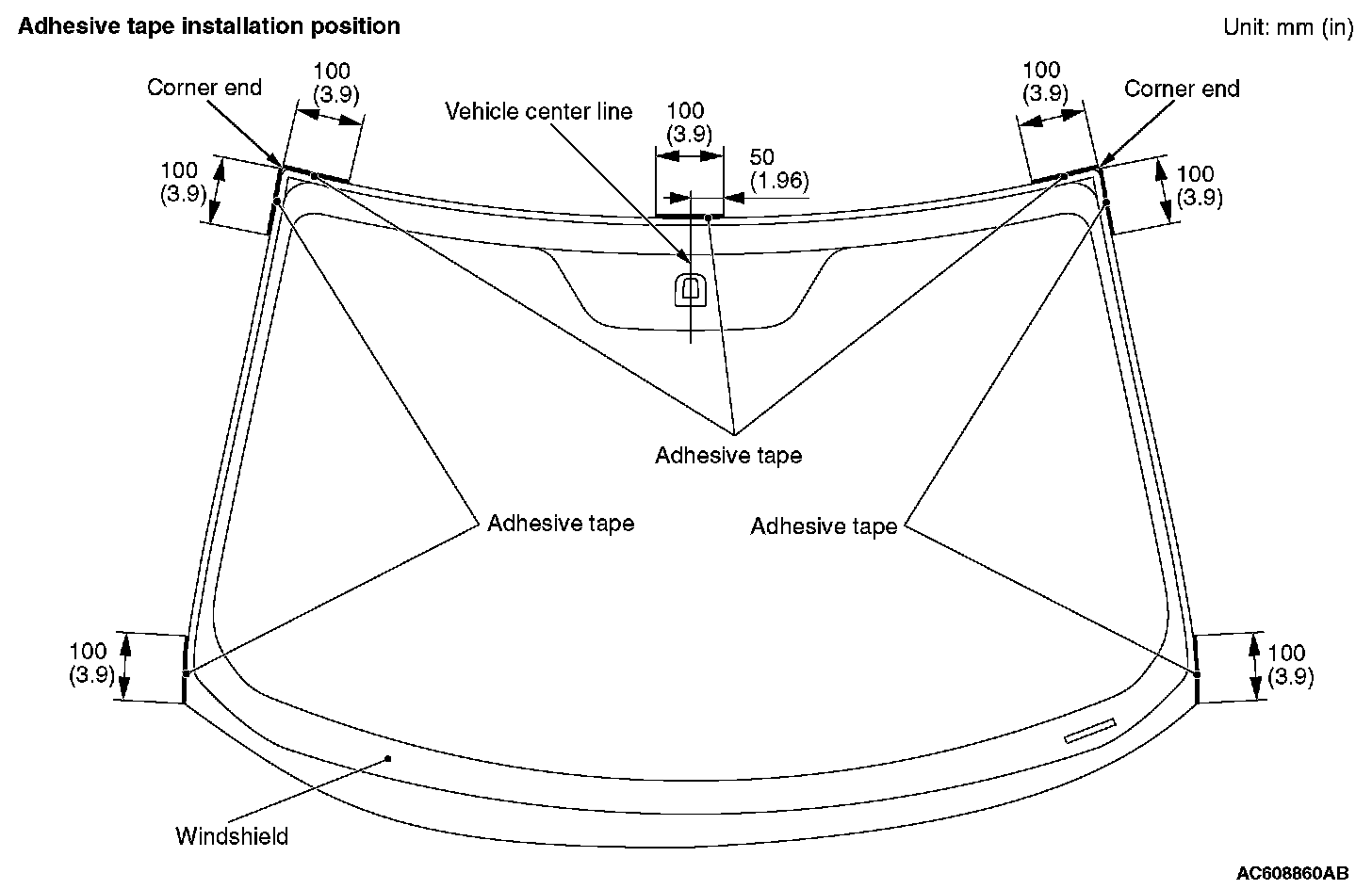 1. When replacing the windshield, temporarily set the windshield against the body, and place a mating mark on the windshield and body.