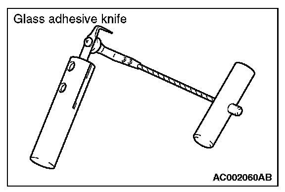 CAUTION: Inserting the glass adhesive knife too deeply into windshield adhesive may damage windshield.