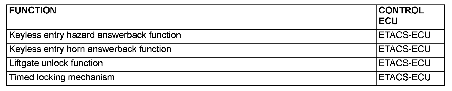 After unlocking the doors with the keyless entry transmitter, if no doors are opened, if the ignition key is not inserted or if the locking function is not operated, the ETACS-ECU automatically locks the doors in 30 seconds.