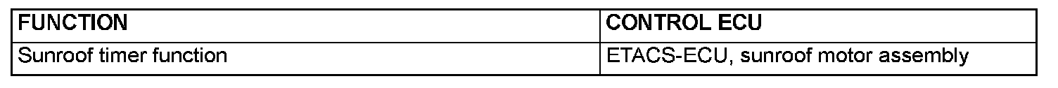 The ETACS-ECU enables opening and closing of the sunroof for 30 seconds after the ignition is switched off. During this timed operation, if the driver's door or passenger's door is opened, the sunroof timer function is deactivated from that moment.